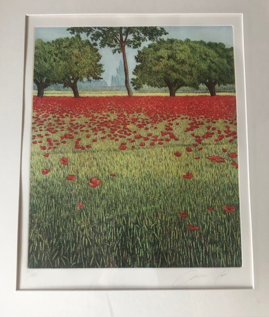 Original limited edition etching by the Italian artist and master printmaker Oliviero Masi who is known for his exquisite etchings which have the look of a pastel finish