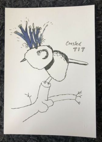 Unsigned / unnumbered lithograph on Magnani 315 gsm paper from Vic Reeves’ 2006 bird series, this one is The Crested Tit.  Blind stamped lower right corner with the Sky Editions blindstamp.