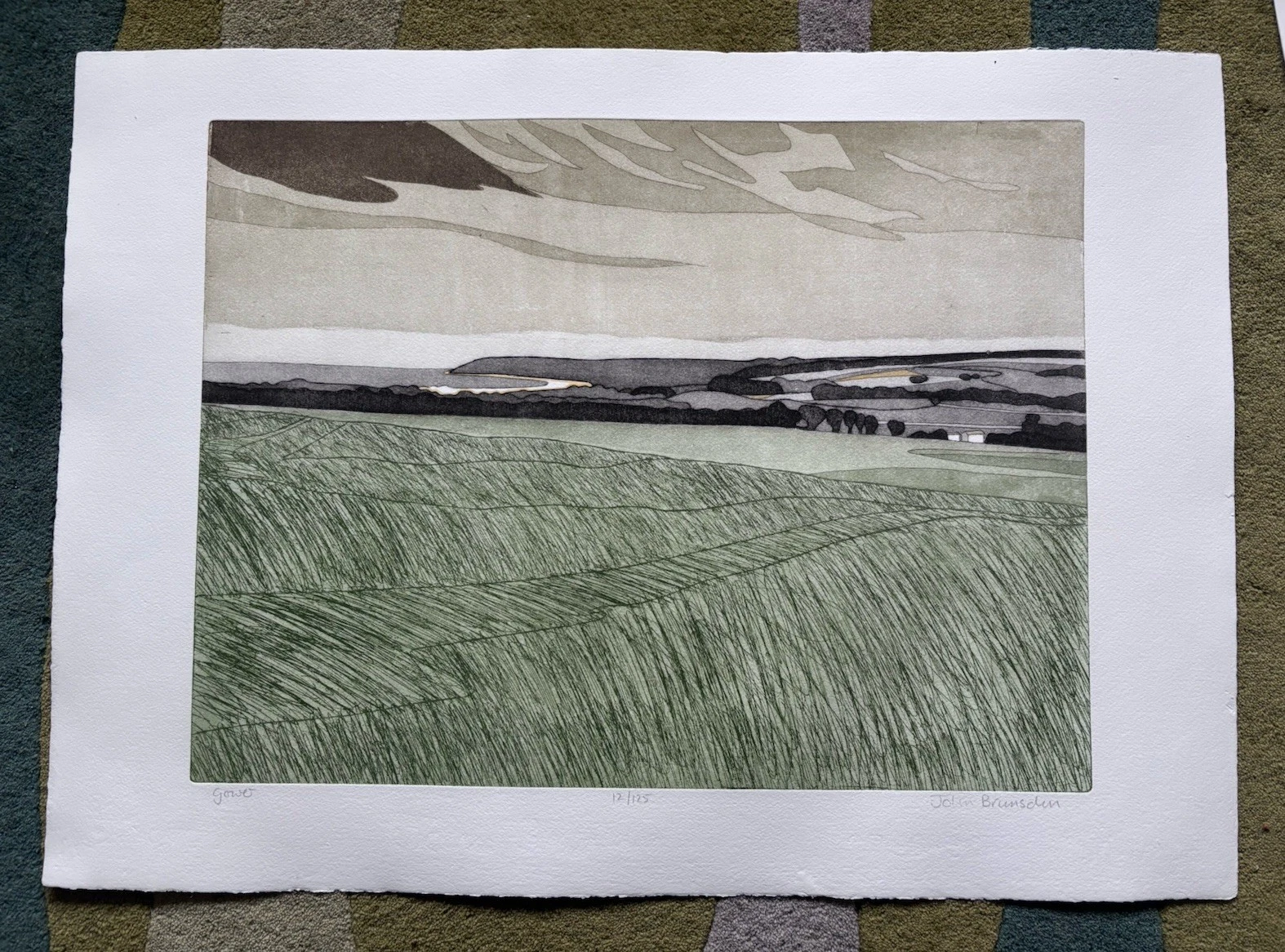 John Brunsdon RE (1933-2014)An original large and stunning aquatint etching by John Brunsdon, Gower