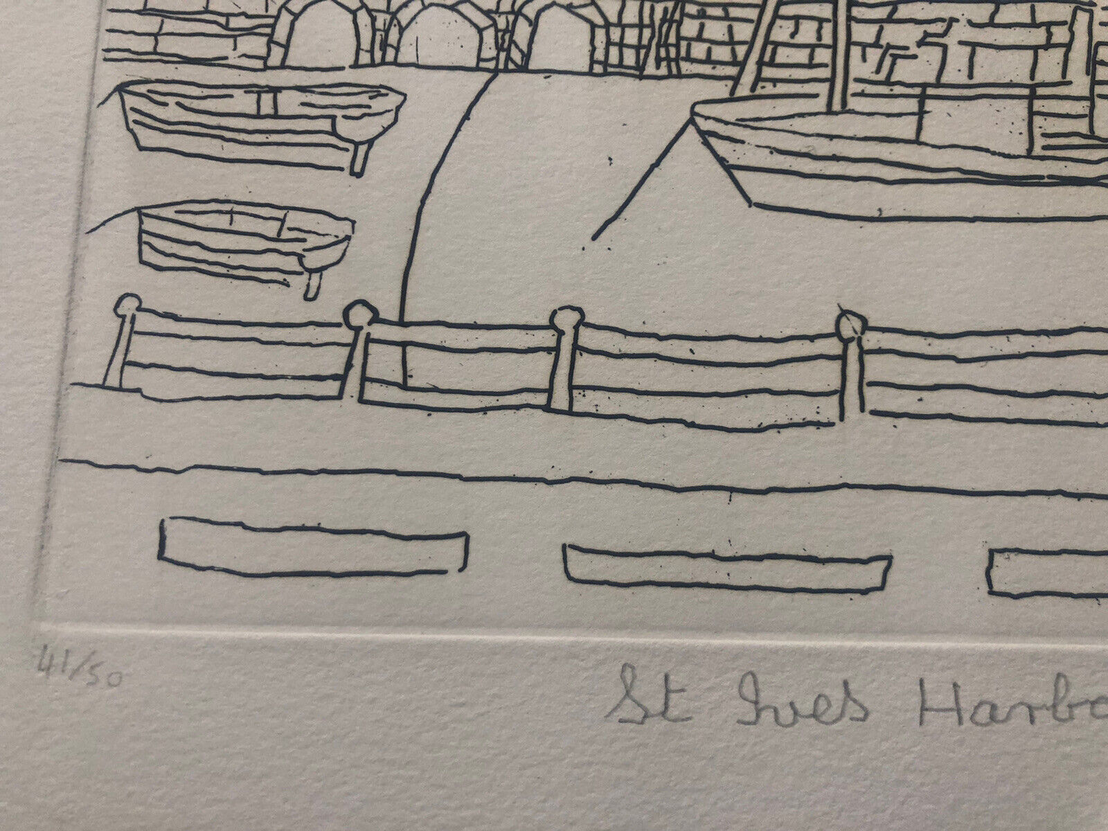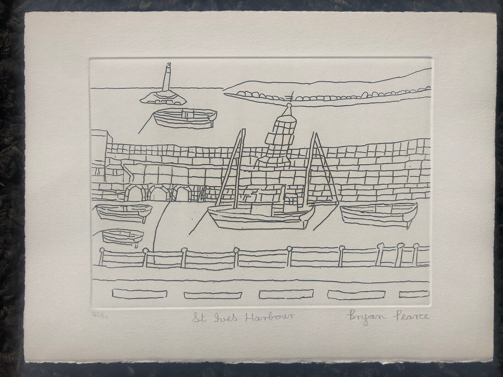 An incredibly sought after St Ives artist, this is a signed and numbered etching of St Ives Harbour by the late Bryan Pearce.