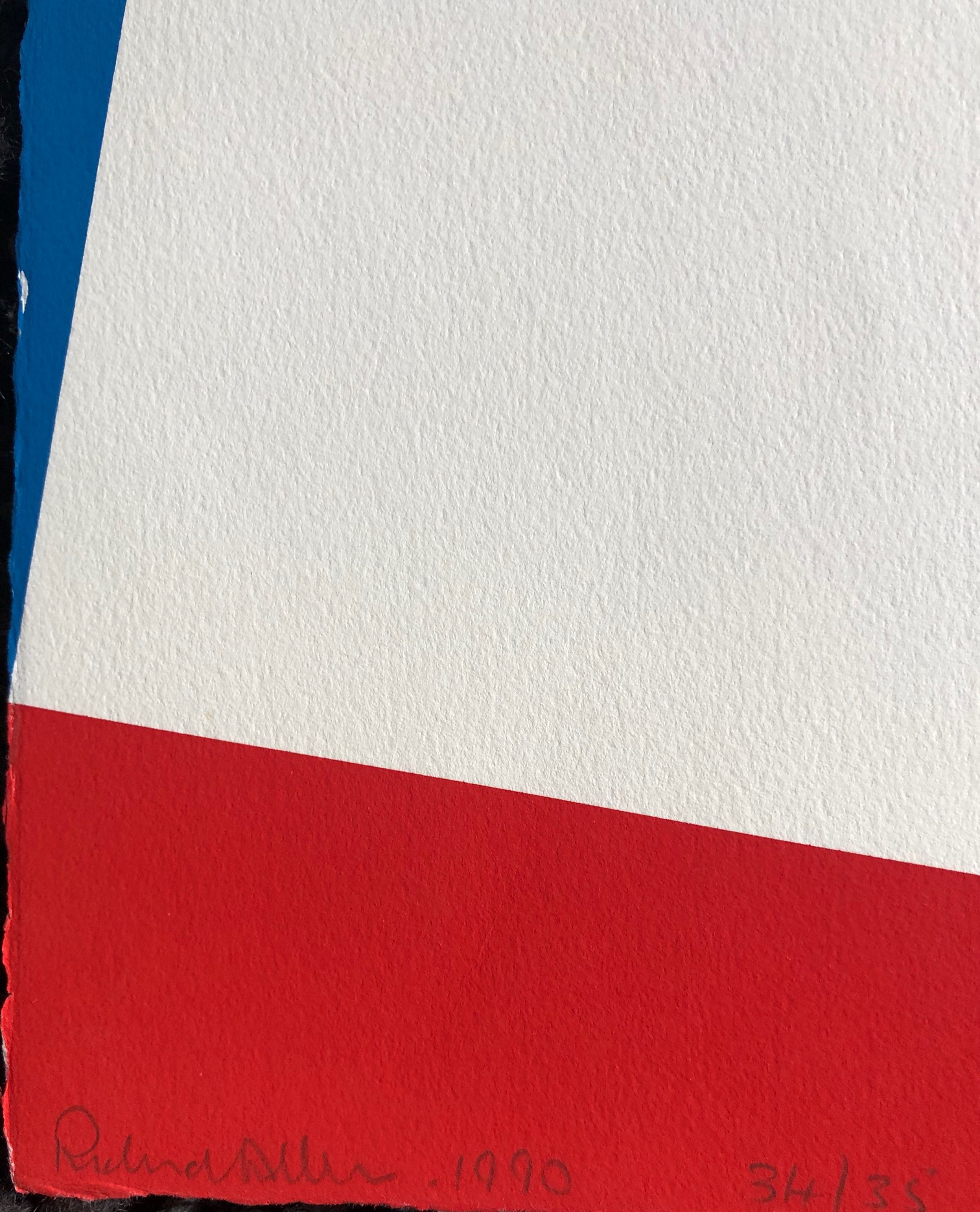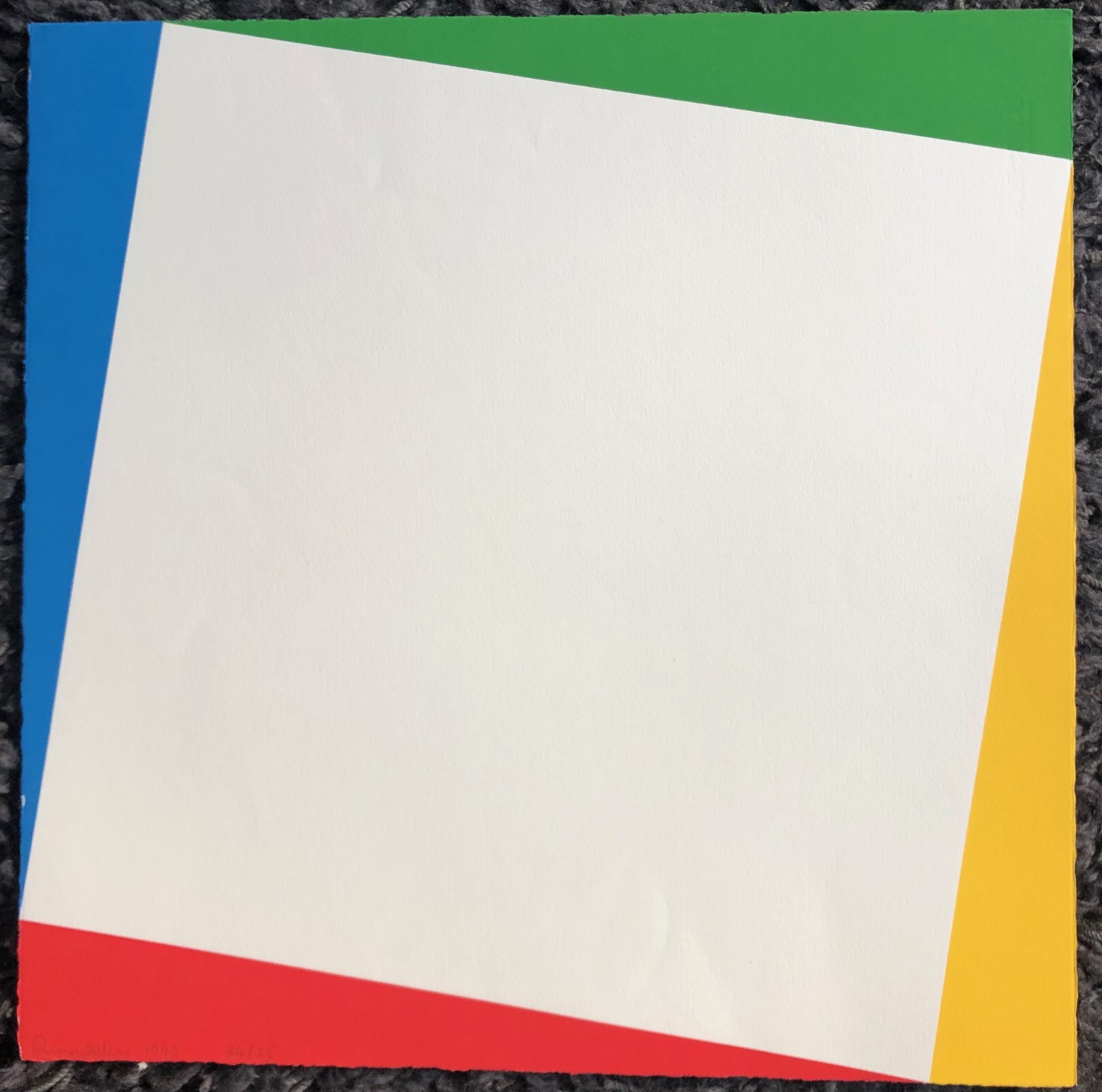 A stunning geometric composition in four colours referenced on the artist’s estate website. An edition of just 35, signed and numbered 34/35 in pencil lower right and dated 90. The paper is a good quality thick paper.