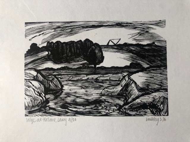 Wonderful Original limited edition wood engraving by the late Kenneth Lindley RE, of the river Wye at Holme Lacy in Herefordshire.